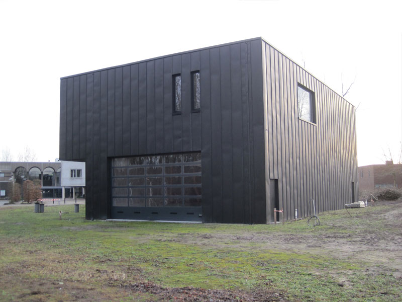 Het gebouw werd gefundeerd op in de grond gevormde schroefpalen.
