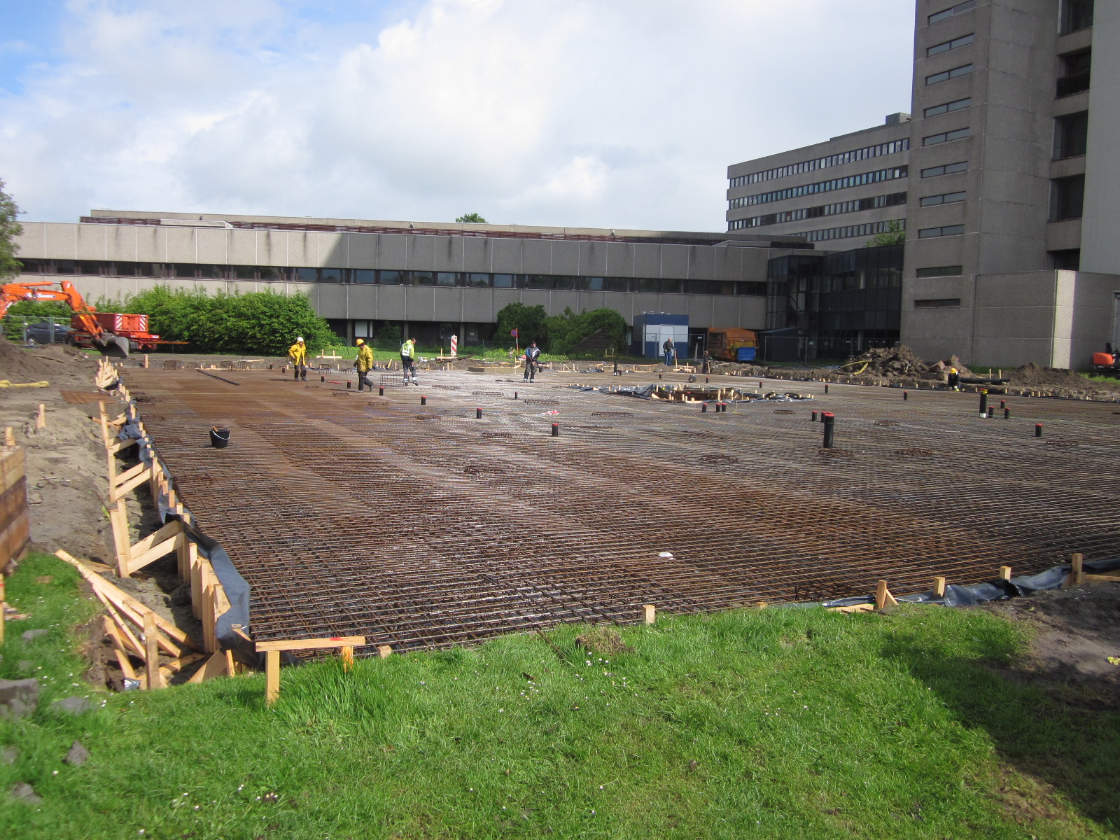 Zowel het gebouw als de verbindingsgang zijn gefundeerd op palen omwille van de weinig draagkrachtige grondlagen. De betonnen kernen werden volledig geprefabriceerd en vervolgens gemonteerd op de werf om de snelle uitvoering te waarborgen.